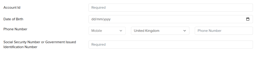 • Enter US Social Security number, or National Insurance Number, or other tax identification number