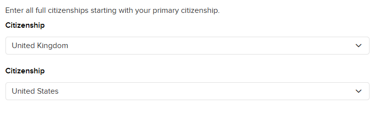 - Select if you are a dual citizen and also the countries of birth as may be relevant for you.